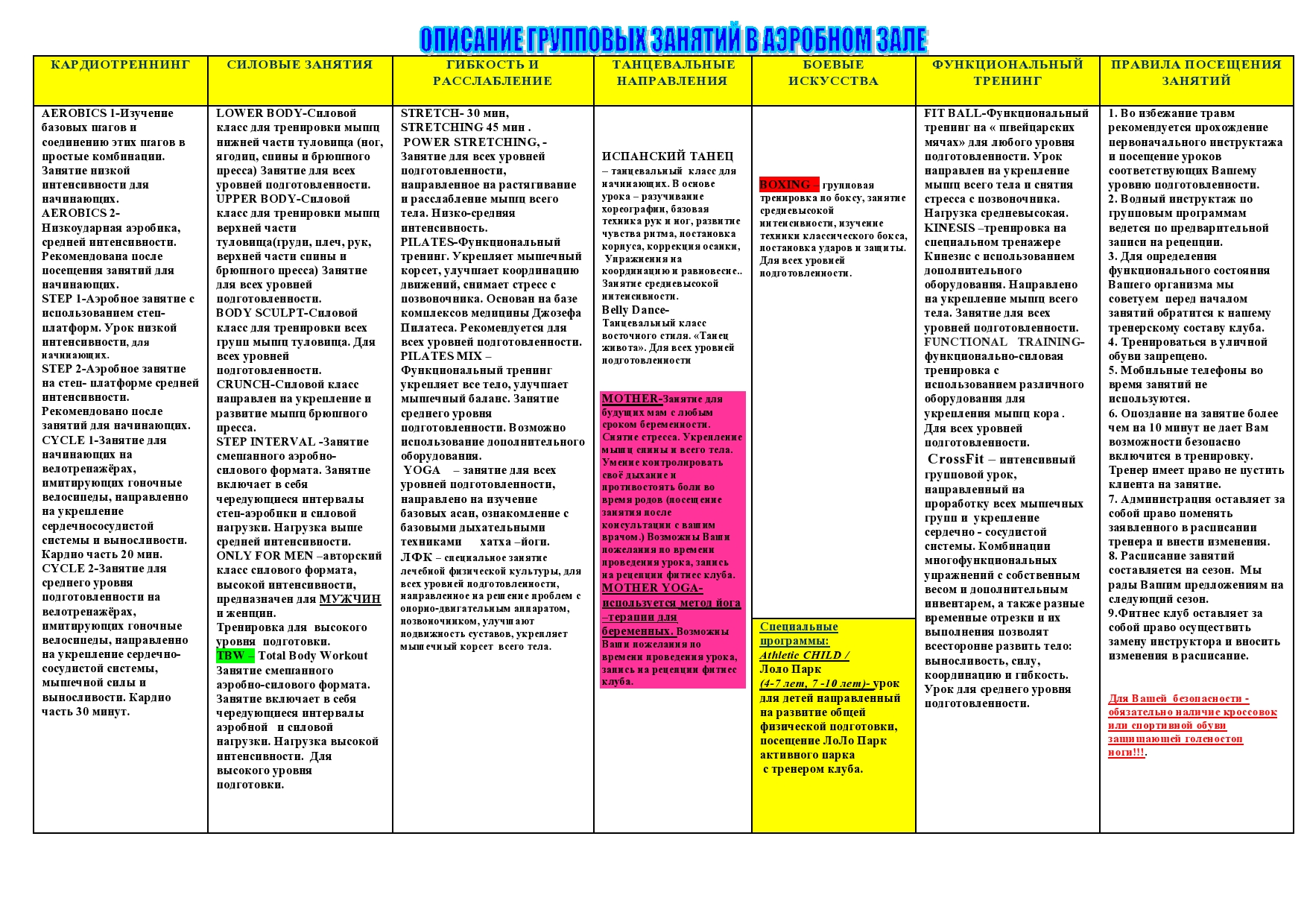 Скачать расписание групповых занятий word